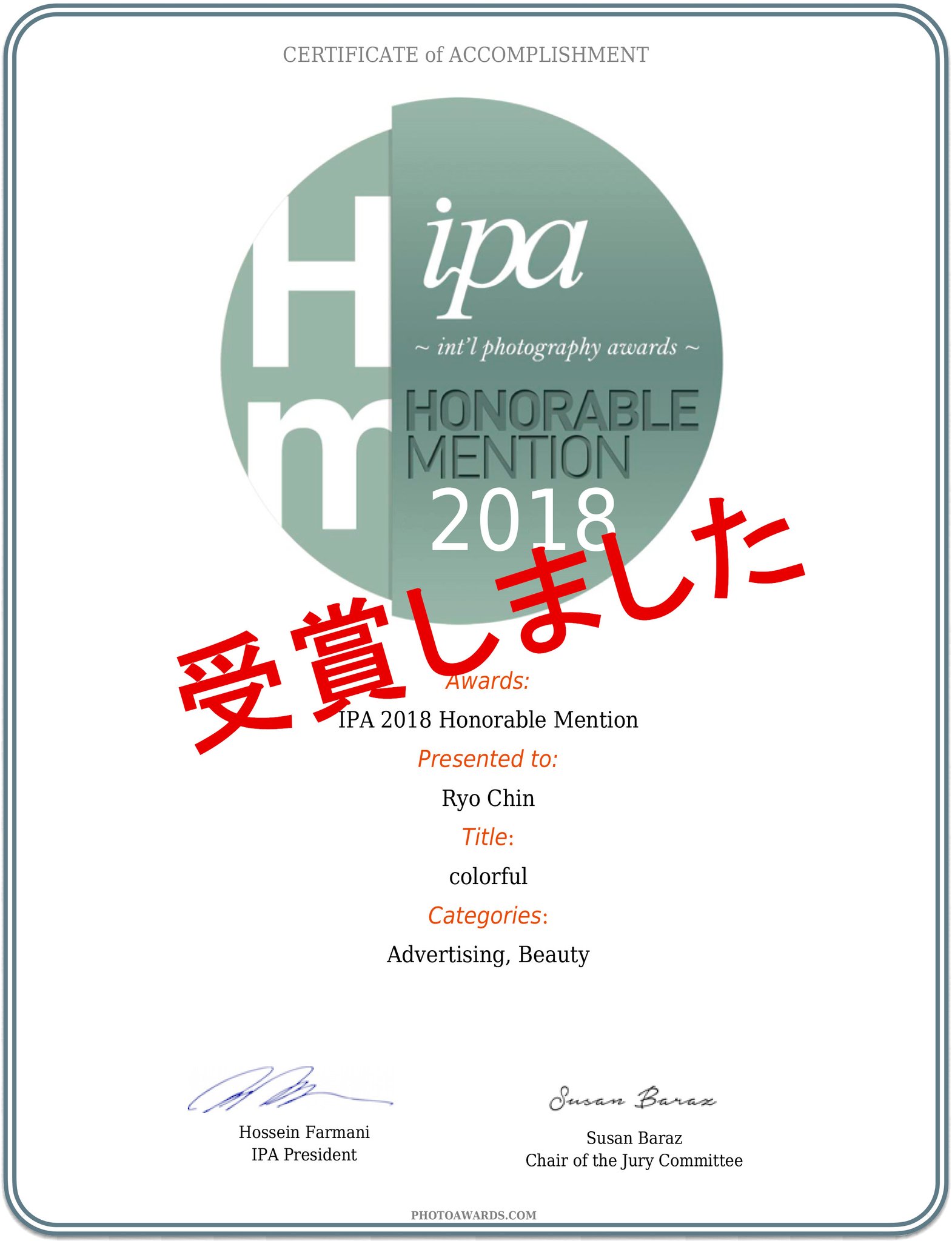 フォトグラファー陳亮は国際写真コンテストIPA2018で受賞しました。