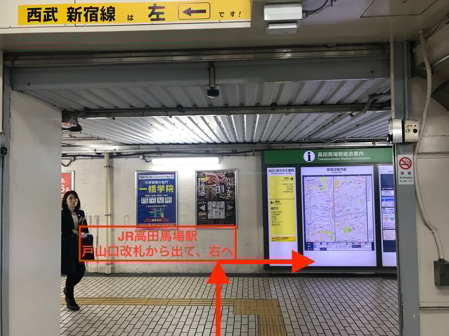 JR山手線 高田馬場駅 戸山口(改札口)からのルートです。